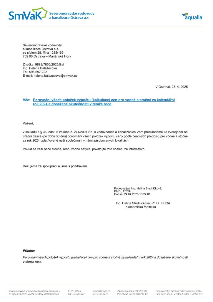 Severomoravské vodovody a kanalizace Ostrava a.s. - A01 SmVaK Vodné (1)